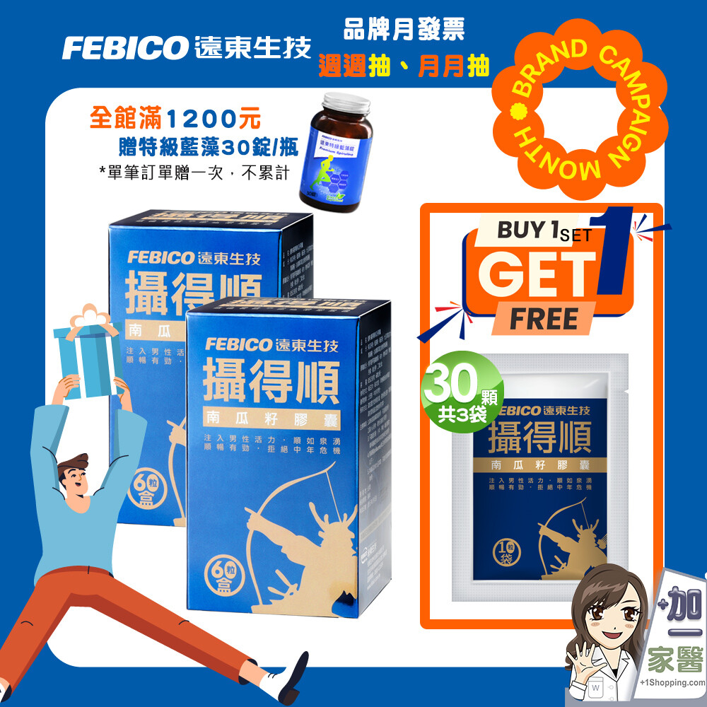 遠東生技 攝得順南瓜籽膠囊 (60粒/瓶)滿額送小藍藻或指定2瓶送體驗包30顆(3袋)
