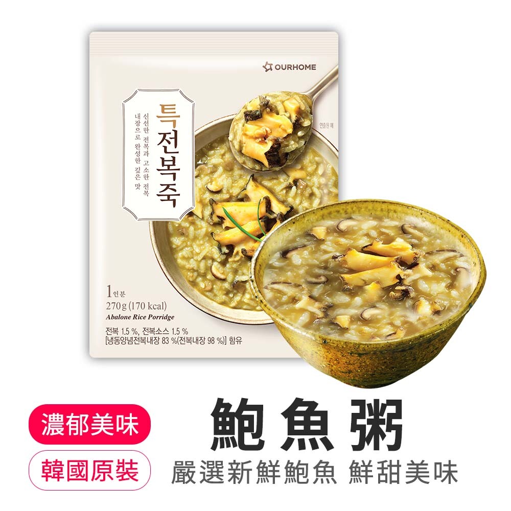 成份水,米,海螺,蔬菜提取物(香菇片),鮑魚,鮑魚醬[冷凍調味鮑魚(鮑魚,l-麩酸鈉,鹽)],糯米,芝麻油,海鮮高湯濃縮液(蛤蜊提取物,玉米澱粉,糖,大豆,牛奶,小麥),米粉,混合劑(羥丙基磷酸二澱粉,麥芽糊精),大蒜,牛骨提取物,炒芝麻,鹽,l-麩酸鈉,蝦仁提取粉,蛤仔提取物,調味劑(5'-次黃嘌呤核苷磷酸二鈉5'-鳥嘌呤核苷磷酸二鈉)