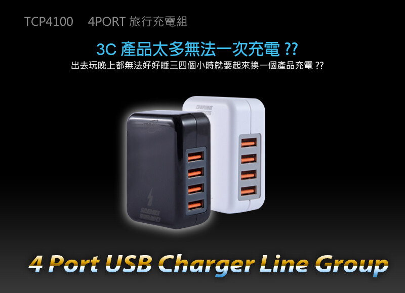 充電埠數 4埠USB黑色充電器, 4埠USB白色充電器