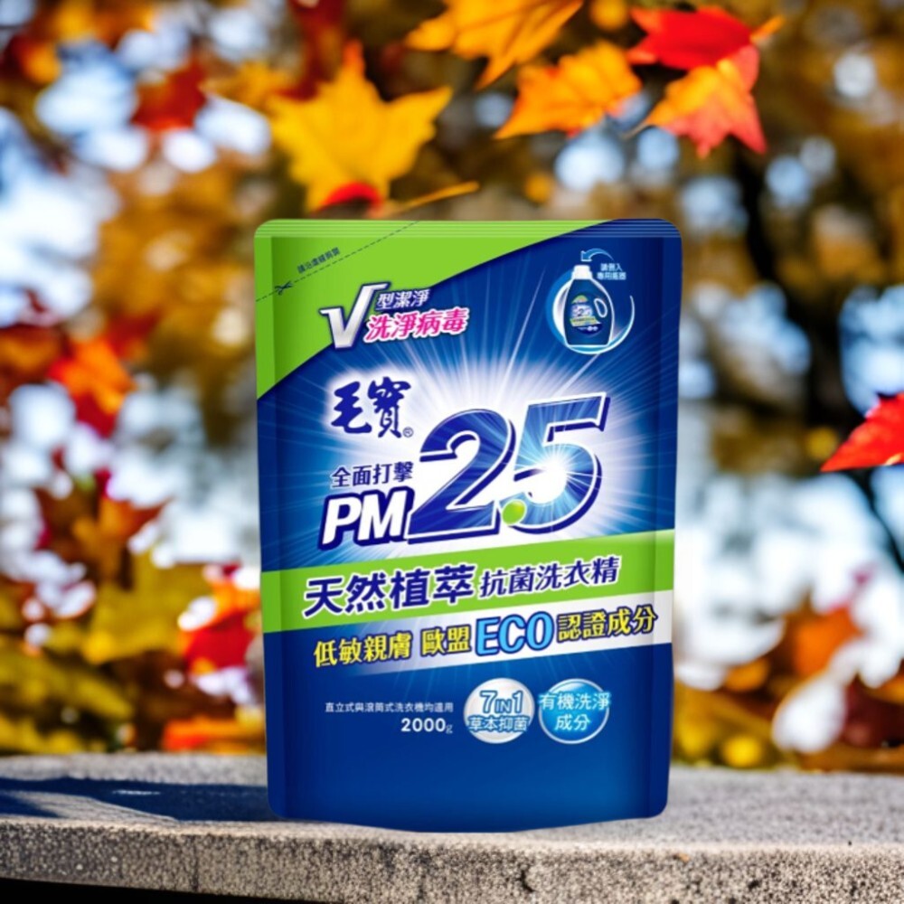 👑PM2.5空污襲擊,空污微粒也跟著衣服回家!毛寶全新導入植萃來源之日本V型潔淨因子,360度零死角深入織物纖維,清除隱藏其中的PM2.5微粒。