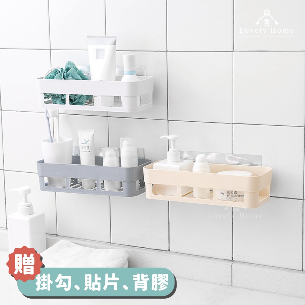 (台中 可愛小舖)贈無痕貼 塑料 長方置物架 免釘 免打孔 承重力強 多功能置物 廚房 浴室 收納架