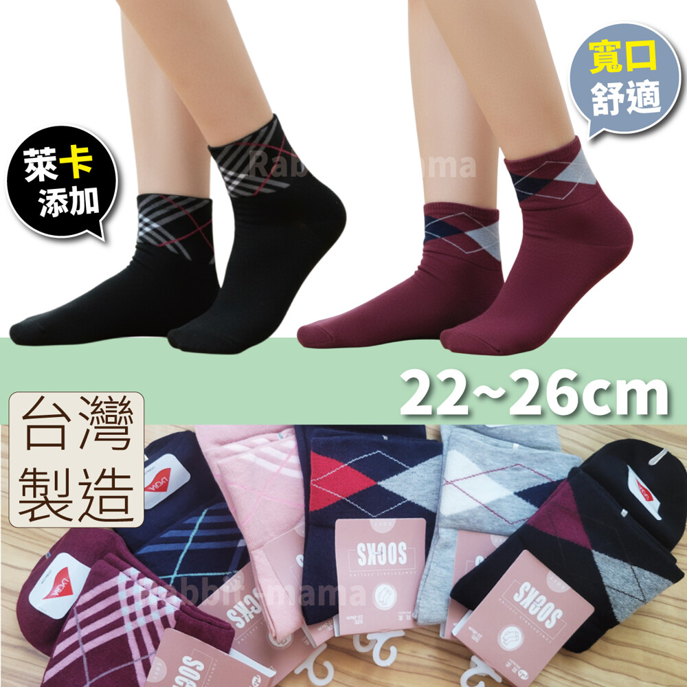 台灣製萊卡寬口短襪-斜紋 541 高棉質寬口襪 貝柔 菱格款 女襪 短襪 休閒襪 兔子媽媽