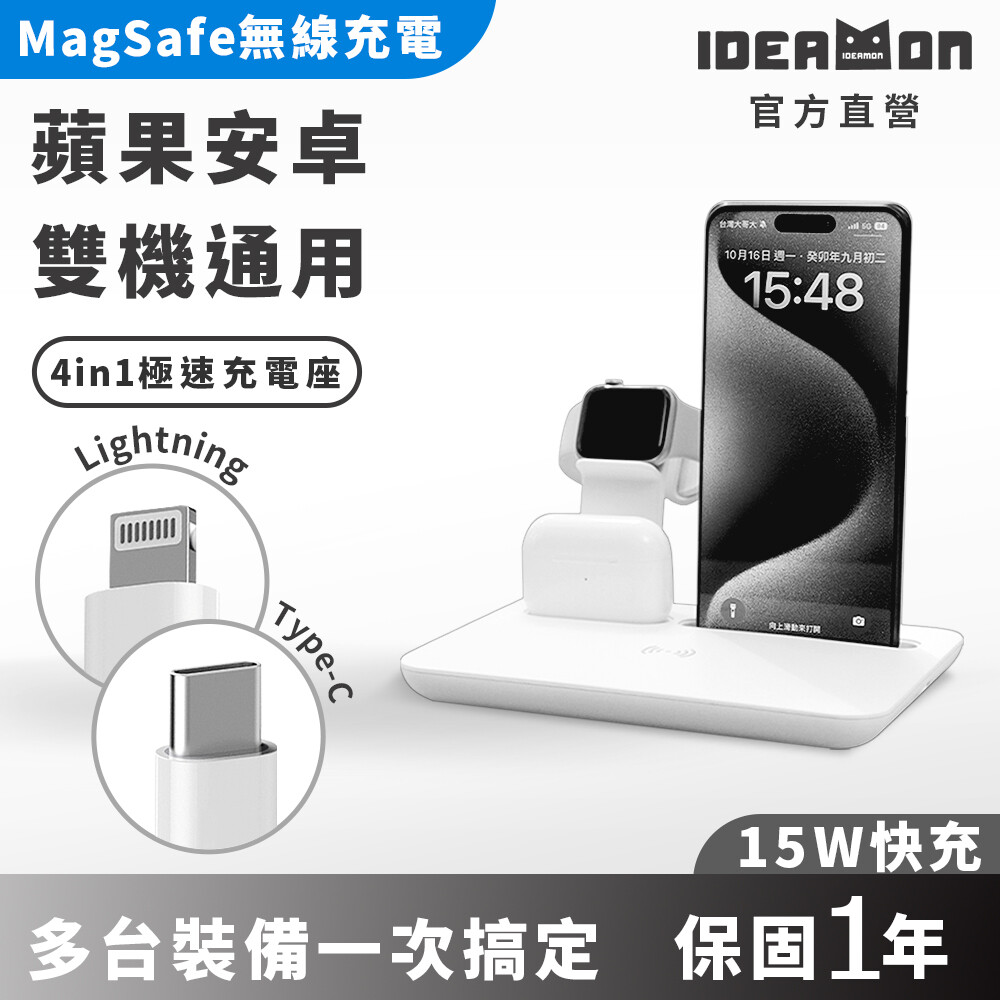 【怪獸選物 IDEAMON】4in1極速充電座・ 蘋果安卓/雙機通用/官方直營/支援iPhone16