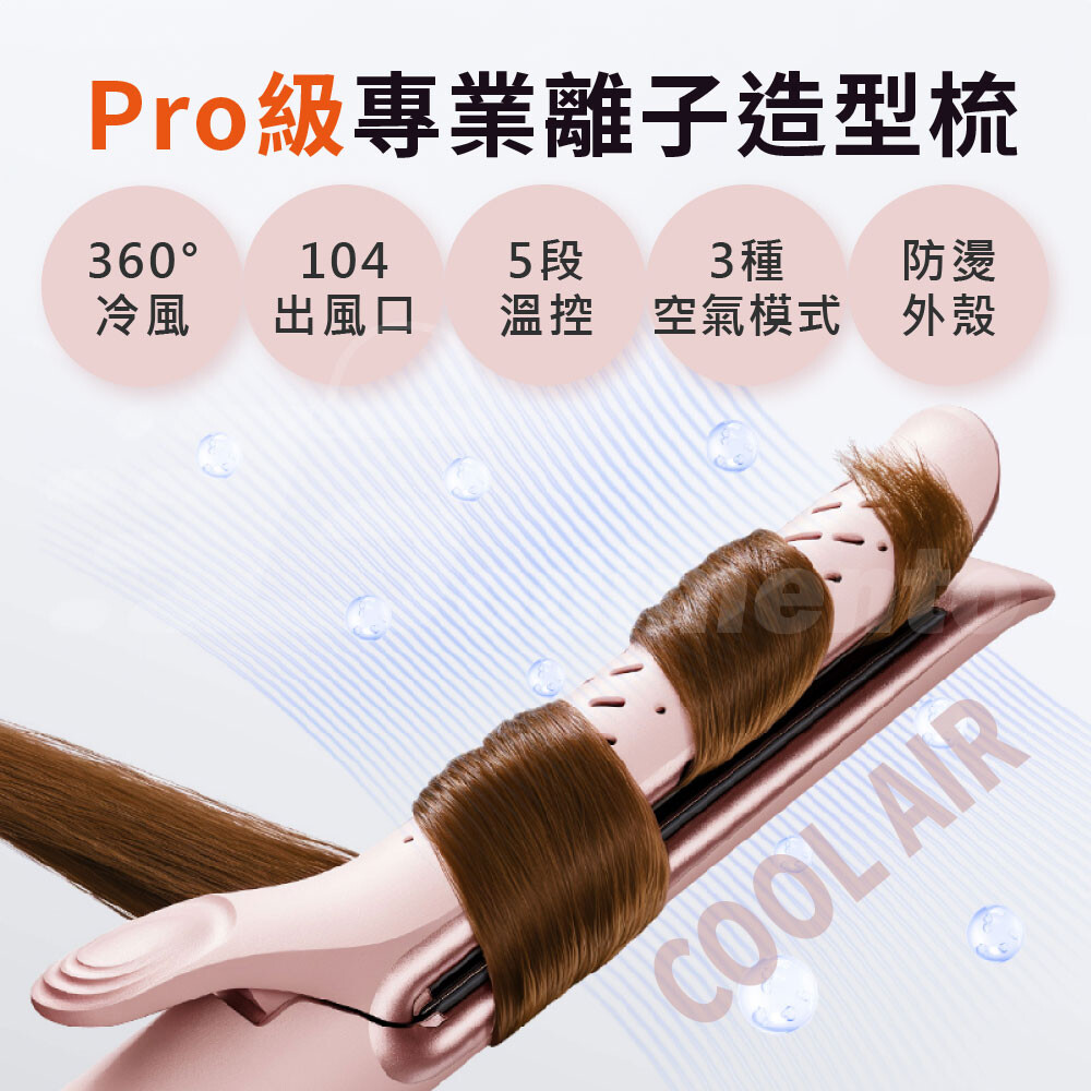 採用104個進氣孔與全方位氣流設計,冷風圍繞秀髮,捲髮造型立刻定型,同時減少熱損傷,呵護每一根髮絲,造型同時保養!