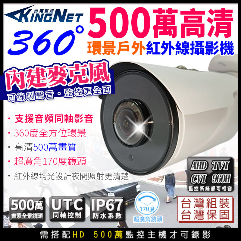 帝網KingNet 高清500萬 同軸音頻 全景大廣角 戶外防水槍型攝影器 5MP UTC
