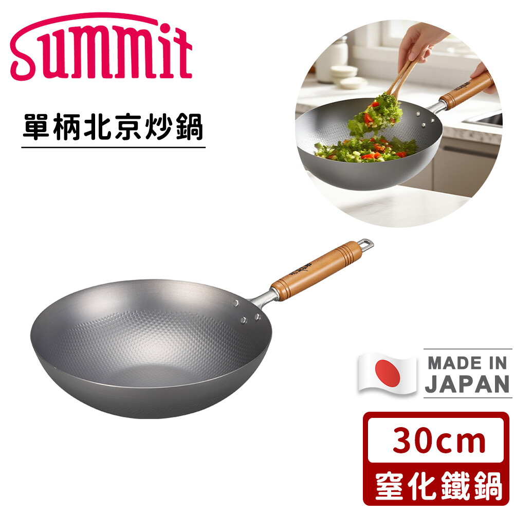 商品品名:【SUMMIT】日本製窒化鐵鍋/單柄北京炒鍋30cm