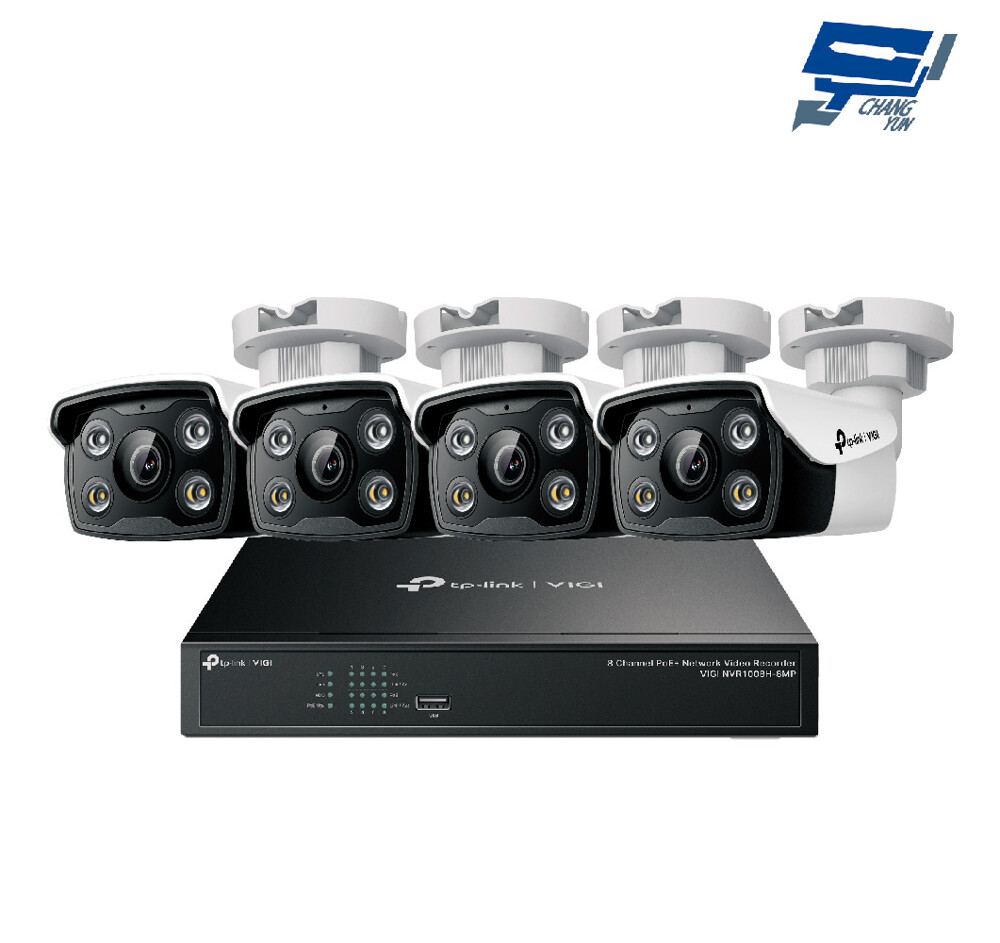 TP-LINK 昌運監視器組合 NVR1008H-8MP 8路主機+C350 戶外槍型網路攝影機*4