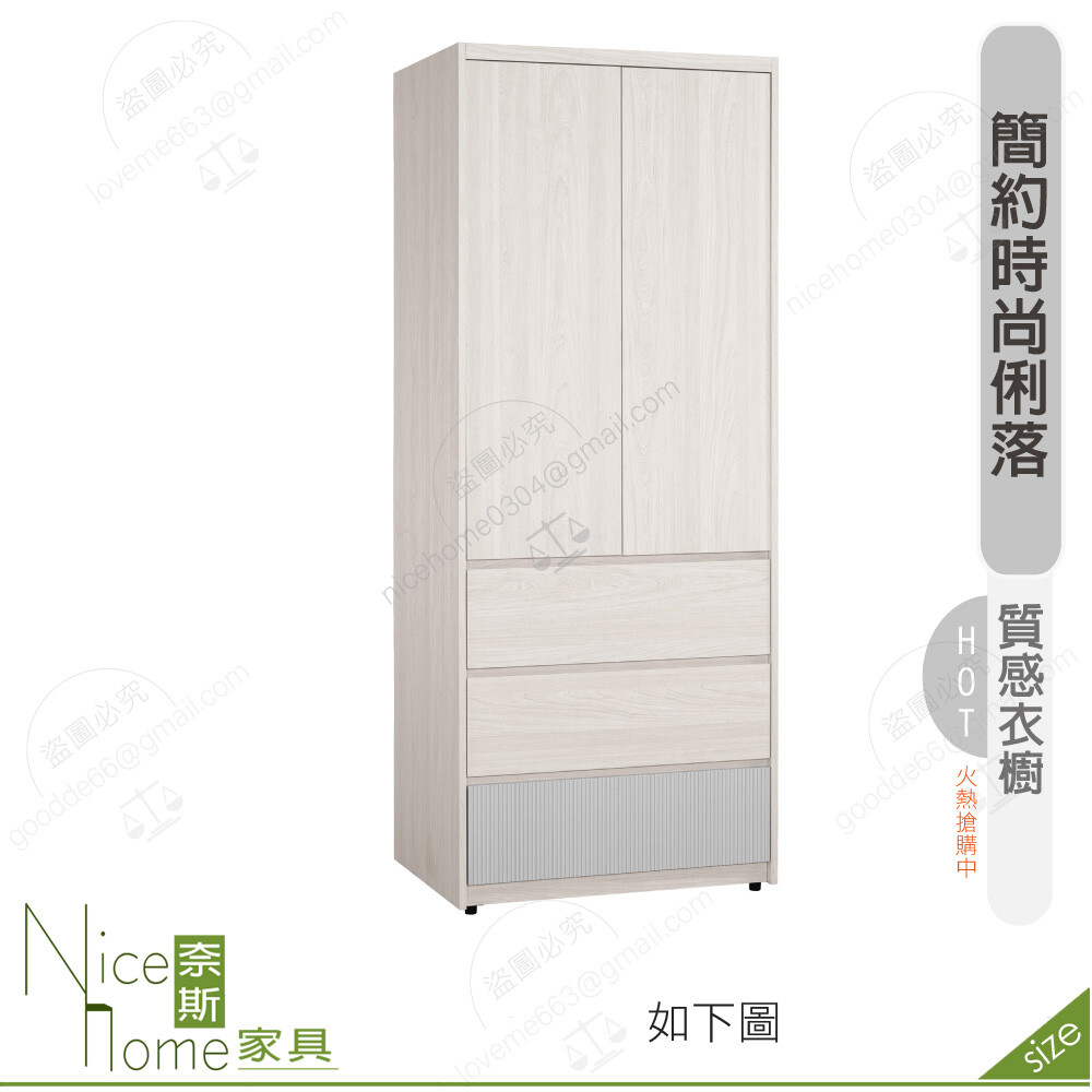 TEL: (02)2828-0860 手機 / Line ID:0905-423-752商品評價你可能也會喜歡【米朵Miduo】2.7尺兩門兩抽塑鋼衣櫃 衣櫥 防水塑鋼家具120001人購買12《奈斯家具Nice》044-02-HP 喬倫斯2.7尺衣櫥/單吊131520《奈斯家具Nice》043-05-HP 喬倫斯2.7尺被櫥式衣櫥/三抽單吊184320《奈斯家具Nice》044-05-HP 喬倫斯1.5尺衣櫥/三抽97920《奈斯家具Nice》043-01-HP 喬倫斯2.7尺被櫥式衣櫥/單吊175680《奈斯家具Nice》044-03-HP 喬倫斯2.7尺衣櫥/雙吊109440《奈斯家具Nice》044-04-HP 喬倫斯2.75尺轉角衣櫥147840《奈斯家具Nice》043-04-HP 喬倫斯1.5尺被櫥式衣櫥/三抽138240《奈斯家具Nice》043-02-HP 喬倫斯2.7尺被櫥式衣櫥/雙吊154560《奈斯家具Nice》041-06-HP 喬倫斯2.7尺五斗櫃103680《奈斯家具Nice》043-03-HP 喬倫斯2.75尺被櫥式轉角衣櫥208320《奈斯家具Nice》042-01-HP 喬倫斯9.4尺組合衣櫥/全組480000《奈斯家具Nice》042-02-HP 喬倫斯6.8尺組合衣櫥/全組369600《奈斯家具Nice》002-03-HP 韋斯里2.7尺衣櫥單吊/衣櫃120000《奈斯家具Nice》329-03-HP 希斯洛2.7尺衣櫥/單吊126720《奈斯家具Nice》216-07-HP 艾維斯2.7尺衣櫥/衣櫃/單吊122880《奈斯家具Nice》524-03-HP 艾德嘉2.7尺衣櫥/衣櫃/單吊124800《奈斯家具Nice》564-9-HP 費納2.7尺衣櫥/單吊/衣櫃115200《奈斯家具Nice》076-03-HP 昆提斯2.7尺衣櫥/單吊/衣櫃120000