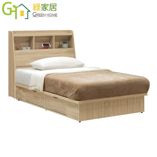 優惠方案方案1 1入 售價$15260 均價$15260 商品介紹【綠家居】蘿柏3.5尺單人二抽床台組合(二色可選+床頭箱+二抽床底+不含床墊) 二色可選+安心材質製造,使用放心+搭配居家更便利,採用防蛀木心板+六分木床板+防潮耐磨底座等安心材質製造 ,外層採用防潮耐磨噴漆處理搭配床頭箱採用可掀式床枕板+內&外開放式層格加上床底採用單邊開合二抽屜等收納空間設計,全由專人配送到家,專業安心服務,替你省下更多時間!