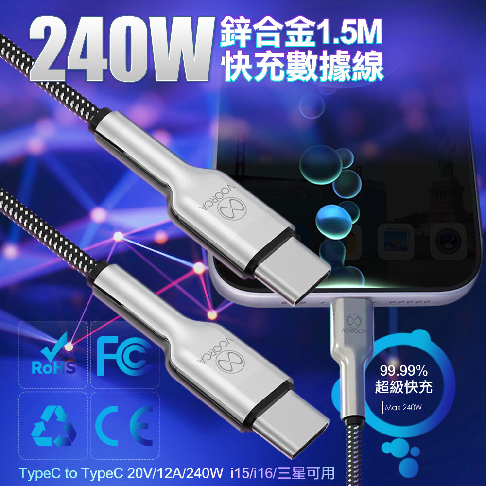 VOORCA 酒杯3D雙色鋅合金充電傳輸線 Type C to Type C -1.5M-2條