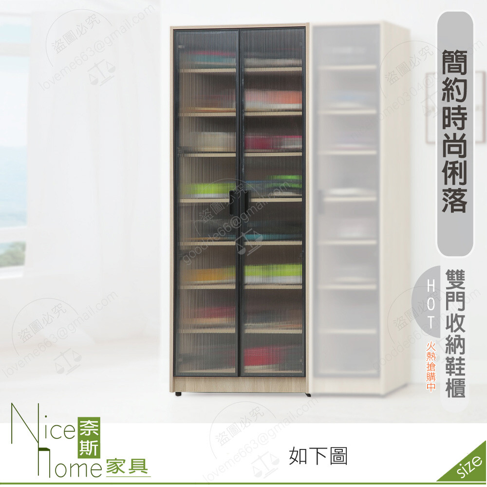 TEL: (02)2828-0860 手機 / Line ID:0905-423-752商品評價你可能也會喜歡《奈斯家具Nice》382-07-HL 艾曼妮2.6尺高鞋櫃54720《奈斯家具Nice》382-13-HL 艾曼妮2.6尺座鞋櫃43200《奈斯家具Nice》382-01-HL 艾曼妮5.2尺鞋櫃/全組240960《奈斯家具Nice》039-01-HH 2.6尺木心板鞋櫃40320《奈斯家具Nice》512-01-HM 布拉斯2.6×6尺鞋櫃69120《奈斯家具Nice》018-01-HK 艾瑪莎2.6尺鞋櫃54720《奈斯家具Nice》537-01-HL 沐澄3×6尺鞋櫃76800《奈斯家具Nice》788-01-HL 肯詩特原橡雙色2尺高鞋櫃86400《奈斯家具Nice》213-01-HG 原木雙色1.3尺玄關雙門鞋櫃78720《奈斯家具Nice》214-01-HG 白榆木1.3尺玄關雙門鞋櫃78720《奈斯家具Nice》789-01-HL 柏亞耐磨ABS木心板3×6尺高鞋櫃86400《奈斯家具Nice》535-01-HM 小久保白色雙門鞋櫃103680《奈斯家具Nice》323-01-HM 炭燒白雙門三抽鞋櫃73920《奈斯家具Nice》839-01-HA 丹尼1.3尺雙門中抽多用途櫃/含轉鏡54720《奈斯家具Nice》122-01-HX (塑鋼材質)2.1×高6尺雙門下開放鞋櫃-綠/白色59520《奈斯家具Nice》121-01-HX (塑鋼材質)2.1×高6尺雙門下開放鞋櫃-白橡色59520《奈斯家具Nice》123-01-HX (塑鋼材質)2.1×高6尺雙門下開放鞋櫃-鵝黃/白色67200《奈斯家具Nice》124-01-HX (塑鋼材質)2.1×高6尺雙門下開放鞋櫃-粉紅/白色67200