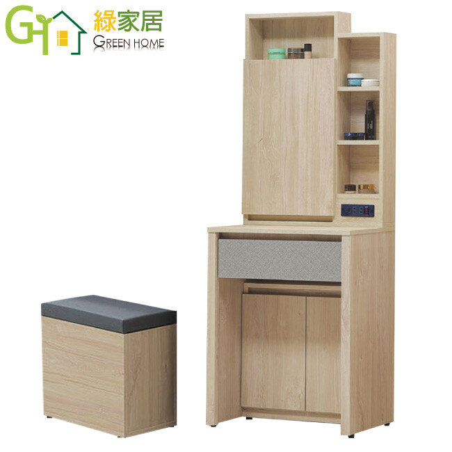 方案1 1入 售價$6570 均價$6570 商品介紹【綠家居】唐斯2尺開合鏡面鏡台組合(含化妝椅) 木紋雙色系+安心材質製造,使用放心+搭配居家更便利,採用防蛀木心板+防潮耐磨底座+強化玻璃鏡面等安心材質製造 ,外層採用防潮耐磨噴漆處理搭配採用開合鏡面櫃+開門櫃+便利插座+單抽屜+內&外開放層格等收納空間設計,全由專人配送到家,專業安心服務,替你省下更多時間!