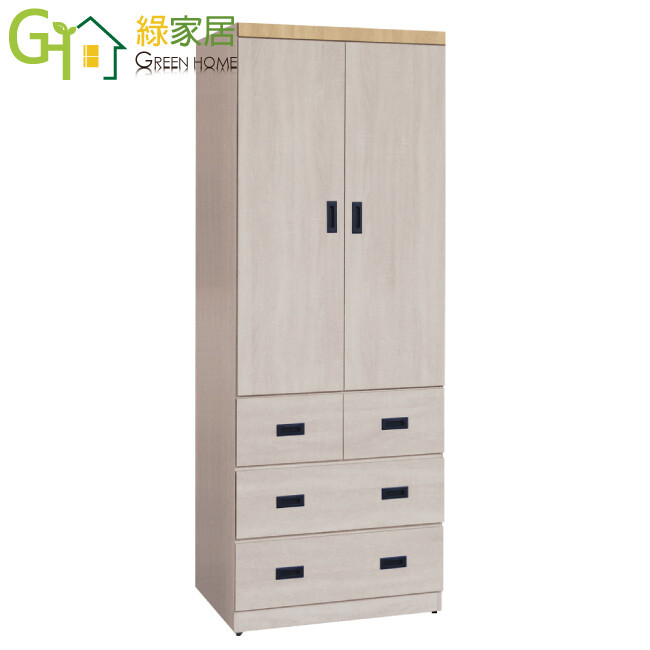 【綠家居】伊考斯雙色2.7尺二門三抽衣櫃(門內含鏡面)