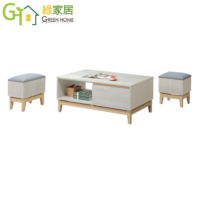 方案1 1入 售價$9959 均價$9959 商品介紹【綠家居】歌斯4尺單抽大茶几(附收納椅凳二張) 淺橡雙色系+安心材質製造,使用放心+搭配居家更便利,採用防蛀木心板+防潮耐磨腳座+五金滑軌結構等安心材質製造 ,外層採用防潮耐磨噴漆處理搭配採用單抽屜+開放式層格+附收納椅凳二張等收納空間設計,全由專人配送到家,專業安心服務,替你省下更多時間!