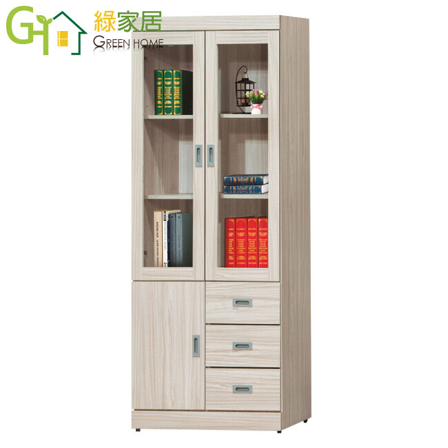 【綠家居】歐斯2.7尺三門三抽收納櫃/書櫃(二色可選)