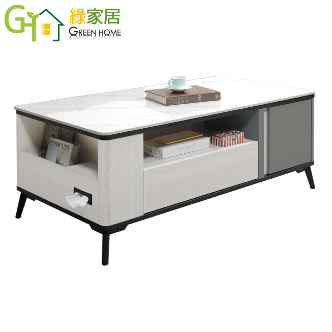 【綠家居】亞格瑞4尺岩板開門單抽大茶几(附收納椅凳二張)