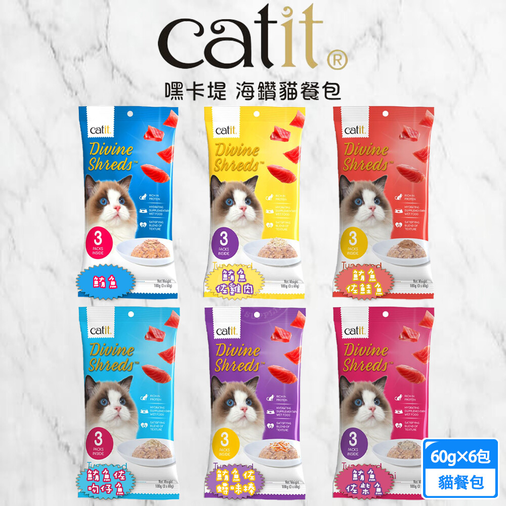 優惠方案方案1 1入 售價$548 均價$548 商品介紹6包組 Catit 嘿卡堤 海鑽貓餐包60g3入/包 主食餐包 貓咪濕糧 貓餐包 貓咪營養餐 貓零食 貓副食包