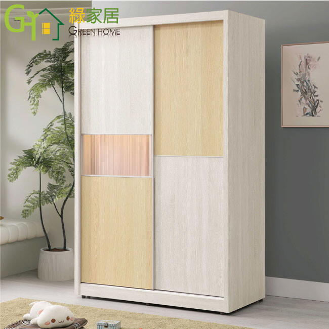 方案1 1入 售價$15802 均價$15802 商品介紹【綠家居】菲可雙色4尺推門玻璃衣櫃 木紋雙色系+安心材質製造,使用放心+搭配居家更便利,採用防蛀木心板+防潮耐磨底座+五金滑軌結構+強化玻璃門片等安心材質製造 ,外層採用防潮耐磨噴漆處理搭配採用推門櫃+吊衣桿+單抽屜+內開放多層格等收納空間設計,全由專人配送到家,專業安心服務,替你省下更多時間!