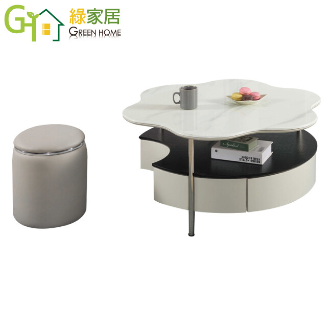 【綠家居】晴天3尺科技石面花朵大茶几(附贈皮革椅凳單張)