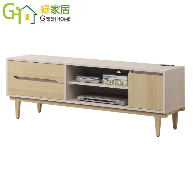 【綠家居】菲可雙色5尺開門二抽電視櫃(附插座單個)
