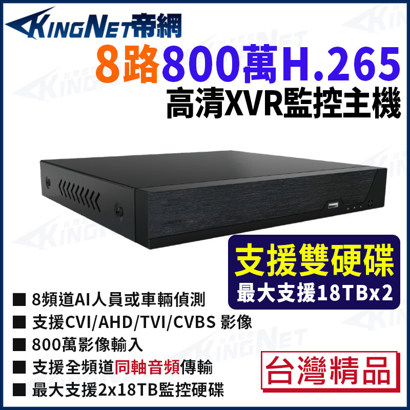 帝網 KingNet 800萬 H.265 8路主機 雙硬碟 台製 AI智能偵測 數位錄影主機 D