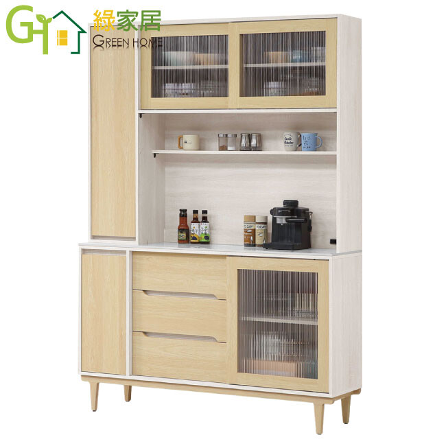 方案1 1入 售價$20347 均價$20347 商品介紹【綠家居】菲可雙色5尺推&開門岩板高餐櫃組合 現代雙色系+安心材質製造,使用放心+搭配居家更便利,採用防蛀木心板+防刮實木腳座+五金滑軌結構+5mm長虹直紋PC耐力板+12mm高硬度岩板桌面板等安心材質製造 ,外層採用防潮耐磨噴漆處理搭配採用推門櫃+開門櫃+三抽屜+內&外開放層格+上座附插座設置等收納空間設計,全由專人配送到家,專業安心服務,替你省下更多時間!