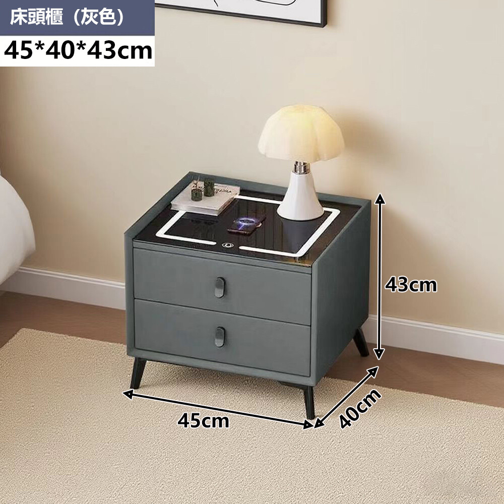 【E家工廠199】免組裝智能床頭櫃 帶無線充電 多功能床邊櫃 抽屜櫃 臥室床頭櫃45公分雙抽床頭櫃