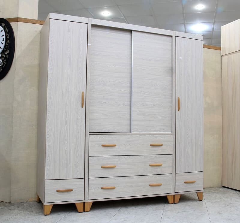 五金 : 中桶大三抽採鋼珠滑軌,滑門門片鋁框包覆,內附一含鎖抽屜 ,左右門