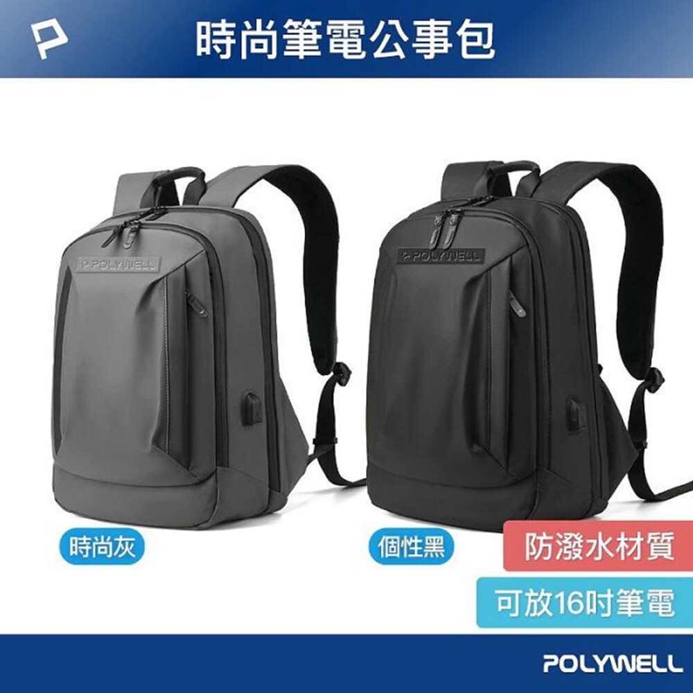 POLYWELL 時尚筆電公事包 後背包 電腦包 防水材質 透氣背墊 大容量 可容納16吋筆電 寶利