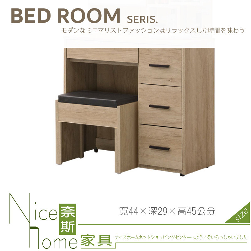 TEL: (02)2828-0860 手機 / Line ID:0905-423-752商品評價你可能也會喜歡《奈斯家具Nice》264-03-HJ 茉娜2.67尺開門鏡台/含椅75840《奈斯家具Nice》264-02-HJ 茉娜四斗櫃60480《奈斯家具Nice》202-05-HJ 蘿拉化妝椅/皮面13150《奈斯家具Nice》265-04-HJ 茉娜5x8尺推門衣櫃/衣櫥231360《奈斯家具Nice》266-04-HJ 茉娜5x6.6尺推門衣櫃/衣櫥182400《奈斯家具Nice》263-04-HJ 茉娜6尺床頭箱71040《奈斯家具Nice》410-04-HP 漢斯化妝椅17280《奈斯家具Nice》001-04-HP 韋斯里化妝椅17280《奈斯家具Nice》431-04-HP 達里歐化妝椅14780《奈斯家具Nice》335-03-HJ 蜜雪兒化妝椅/貓抓皮面11810《奈斯家具Nice》263-02-HJ 茉娜床頭櫃/單21120《奈斯家具Nice》306-02-HJ 帕特化妝椅/貓抓皮面24960《奈斯家具Nice》286-08-HJ 維特化妝椅/貓抓皮面15360《奈斯家具Nice》265-03-HJ 茉娜2x8尺單吊衣櫃/衣櫥77760《奈斯家具Nice》265-05-HJ 茉娜2x8尺雙吊衣櫃/衣櫥77760《奈斯家具Nice》335-04-HJ 蜜雪兒1.32尺鏡台立櫃60480《奈斯家具Nice》202-04-HJ 蘿拉2.65尺伸縮鏡台/含椅160320《奈斯家具Nice》266-05-HJ 茉娜2x6.6尺雙吊衣櫃/衣櫥55680《奈斯家具Nice》265-02-HJ 茉娜9x8尺組合衣櫃全組/衣櫥387840