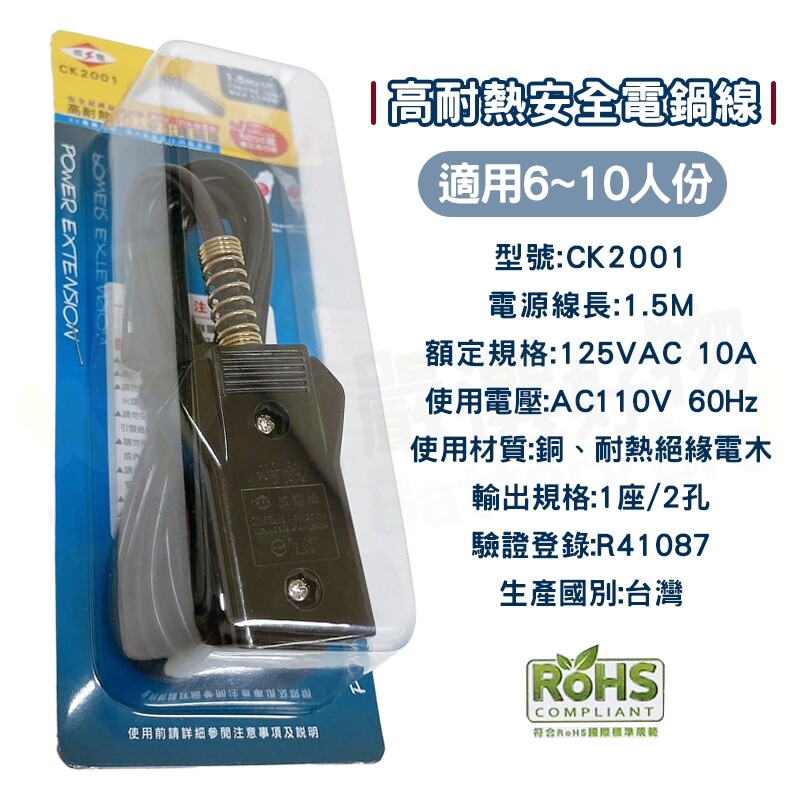 電鍋線 威電 10人電鍋線 1.5米 5尺 TAC-6/10 AC-9 支援大同電鍋【CK007】