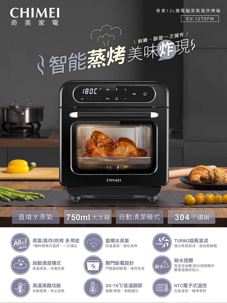 【奇美CHIMEI】12L微電腦蒸氣氣炸烤箱 EV-12T0FM
