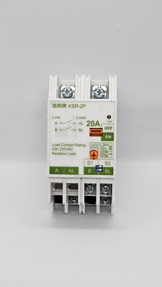 *2P節能開關使用在220V負載,有過電流保護還有動作延遲時間秒數選擇。