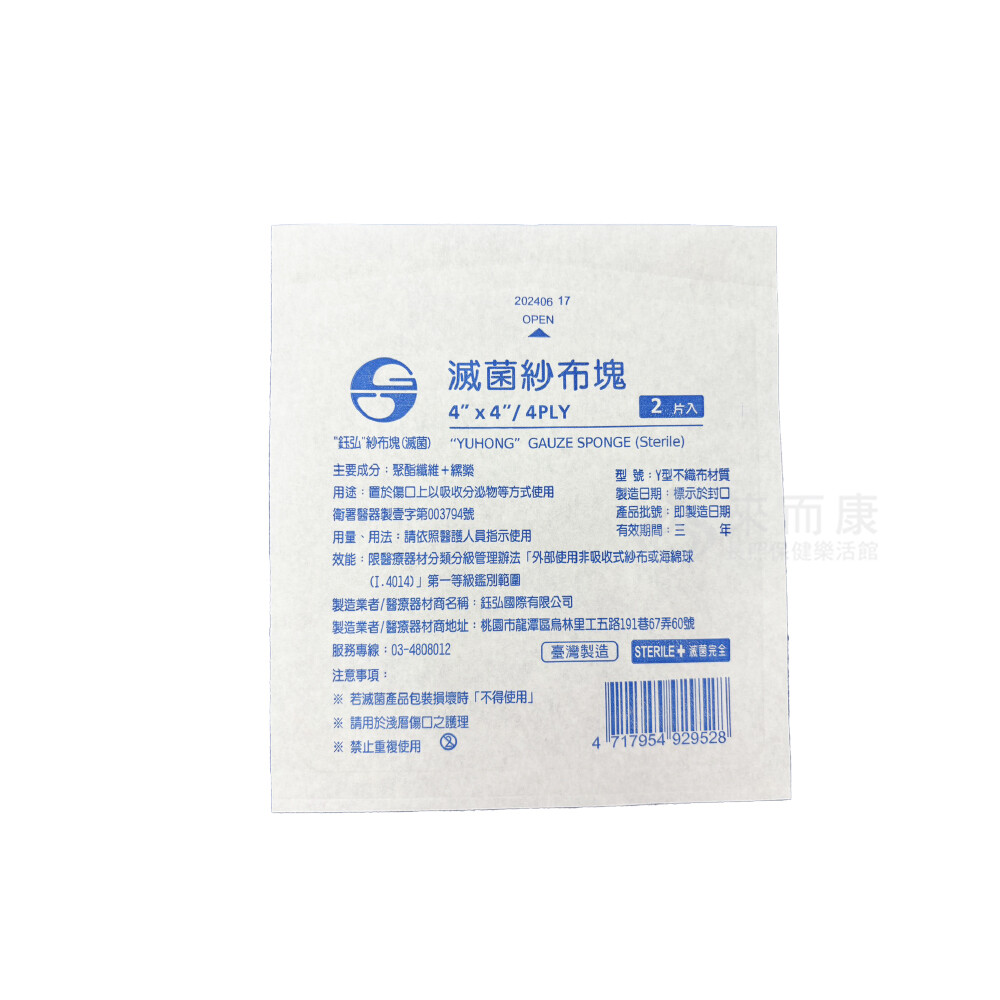 來而康 鈺弘 紗布塊 (滅菌) 4X4 4P Y型 不織布紗布塊 2入/包 1200包/箱 滅菌