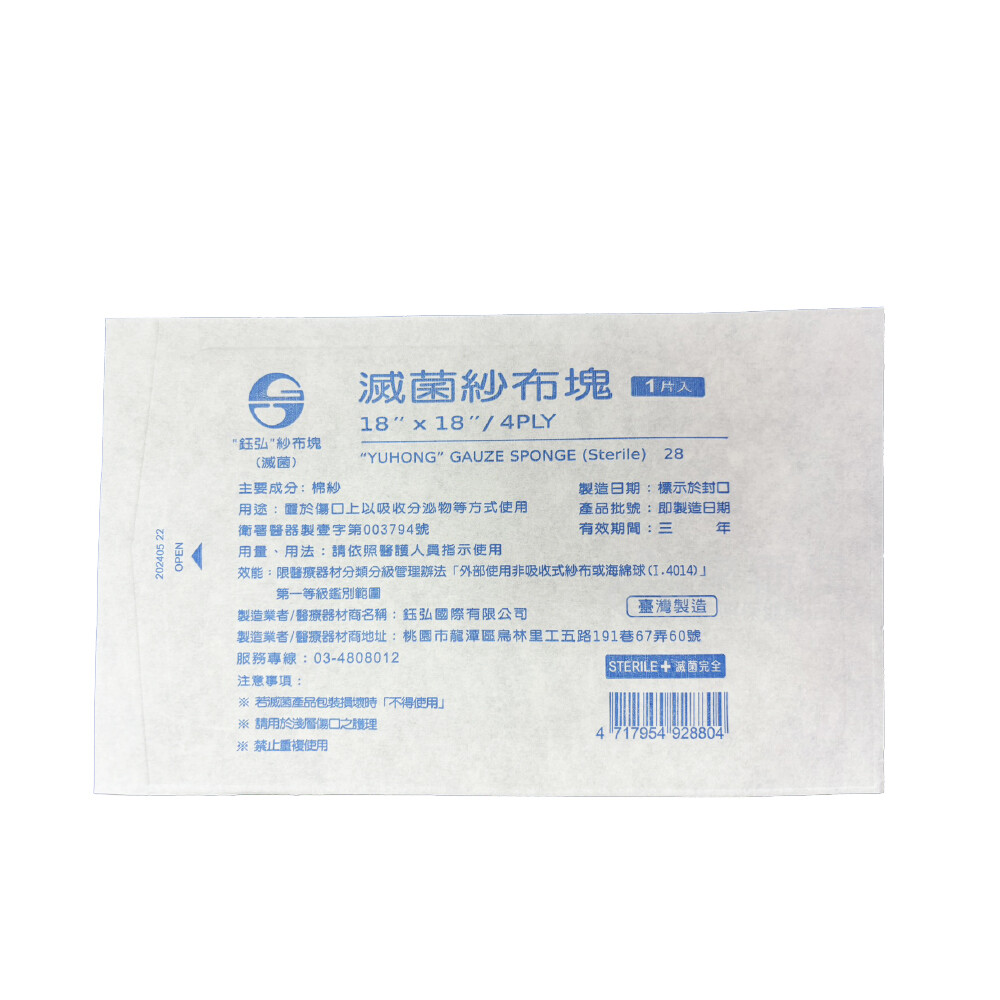 來而康 鈺弘 紗布塊 (滅菌) 18X18 4P 滅菌紗布塊 1入/包 400包/箱 滅菌 紗布