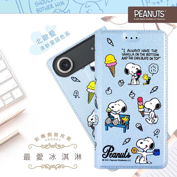 限時免運優惠【SNOOPY/史努比】iPhone 17 Air 彩繪可站立皮套(最愛冰淇淋)
