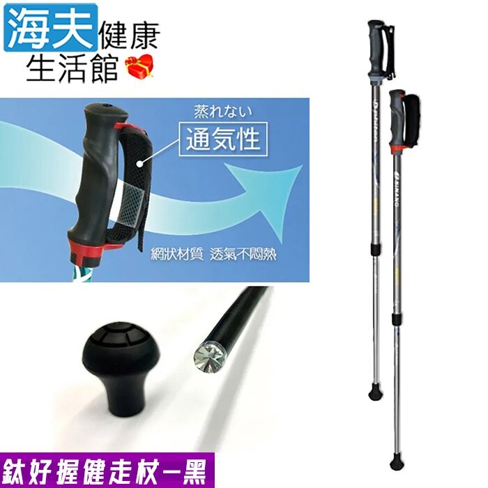 【海夫健康生活館】LZ SinanoxPhiten 鈦好握健走杖 一組二支 黑色(D0221-01)