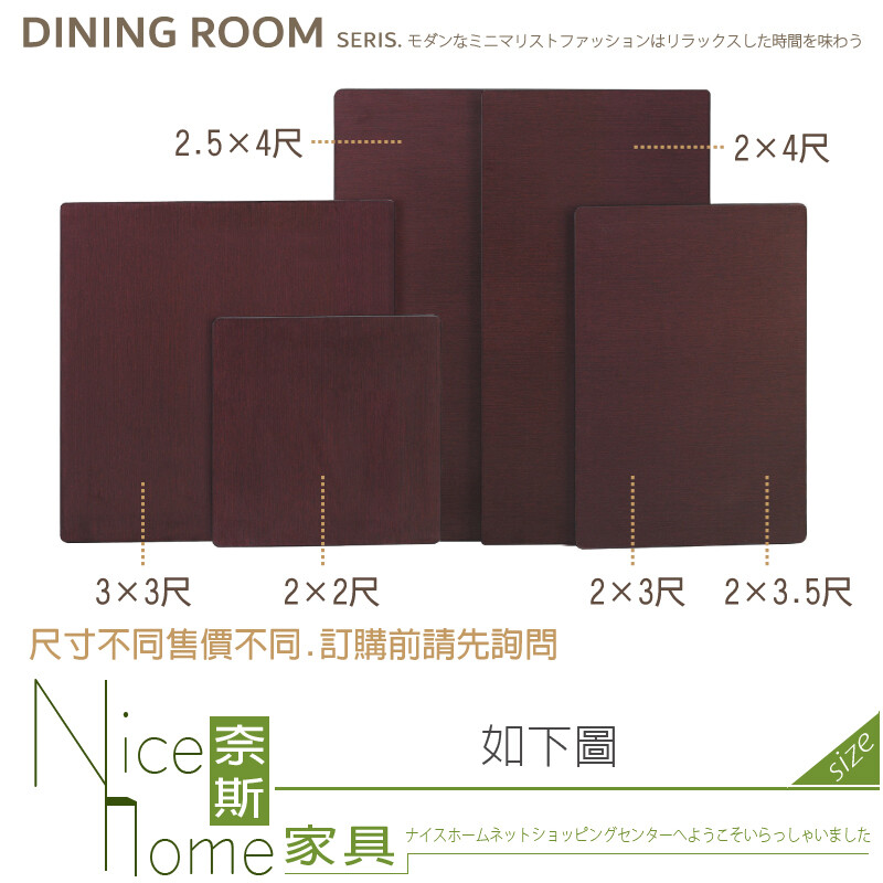 TEL: (02)2828-0860 手機 / Line ID:0905-423-752商品評價你可能也會喜歡《奈斯家具Nice》391-03-HL 胡桃色餐桌桌面/2尺/2.5尺/3尺/3.5尺/4尺圓6620《奈斯家具Nice》391-01-HL 實木餐桌桌面/2尺/2.5尺/3尺7870《奈斯家具Nice》391-05-HL 2×3尺梧桐餐桌桌面13820《奈斯家具Nice》391-06-HL 2×4尺梧桐餐桌桌面18240《奈斯家具Nice》411-01-HK 餐桌桌面/2尺/2.5尺/3尺10750《奈斯家具Nice》391-09-HL 美耐板2×3尺餐桌桌面/黃 (白色/白橡停售)9220《奈斯家具Nice》391-04-HL 2×2尺餐桌桌面/大理石/梧桐/柚木/白櫻桃9790《奈斯家具Nice》706-02-HL 梧桐2×3尺餐桌28800《奈斯家具Nice》391-08-HL 美耐板2×2尺餐桌桌面/黃 (白色/白橡停售)6620《奈斯家具Nice》391-07-HL 2×3.5尺餐桌桌面/大理石紋/梧桐/柚木/白櫻桃15360《奈斯家具Nice》391-10-HL 美耐板2×3.5尺餐桌桌面/黃 (白色/白橡停售)10850《奈斯家具Nice》265-2-HL 2×3尺扇形腳西餐桌28800《奈斯家具Nice》707-02-HL 白櫻桃木2×3.5尺木心板餐桌27840《奈斯家具Nice》265-3-HL 2×3.5尺扇形腳西餐桌30720《奈斯家具Nice》392-10-HL 深柚木餐桌面2×3尺28800《奈斯家具Nice》285-13-HX (塑鋼材質)2.5尺折合餐桌/胡桃色16320《奈斯家具Nice》324-1-HL 手工染色實木餐桌/2×3尺54720《奈斯家具Nice》392-02-HL A1-148噴砂桌腳/2×3尺21120《奈斯家具Nice》265-5-HL 2.5×4尺扇形腳西餐桌36480