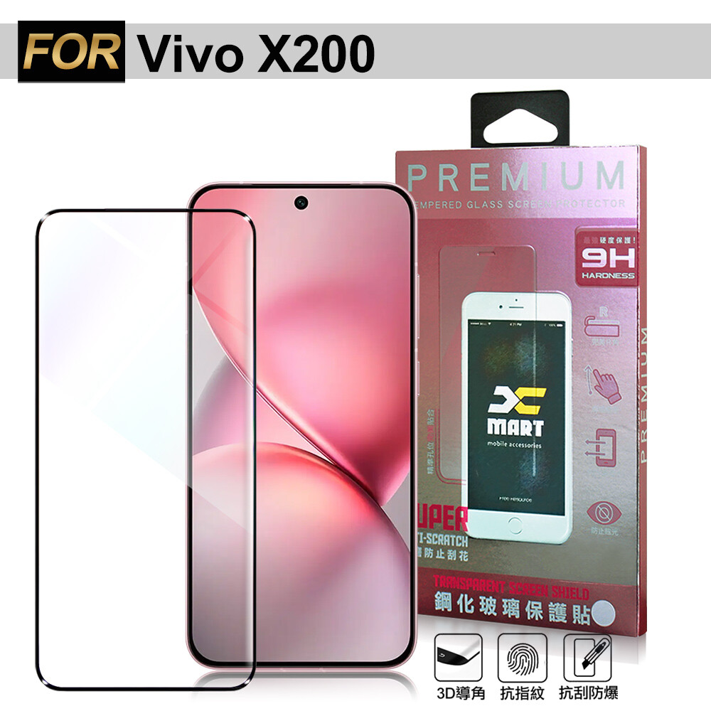 Xmart Vivo X200 邊膠3D滿版曲面玻璃-黑