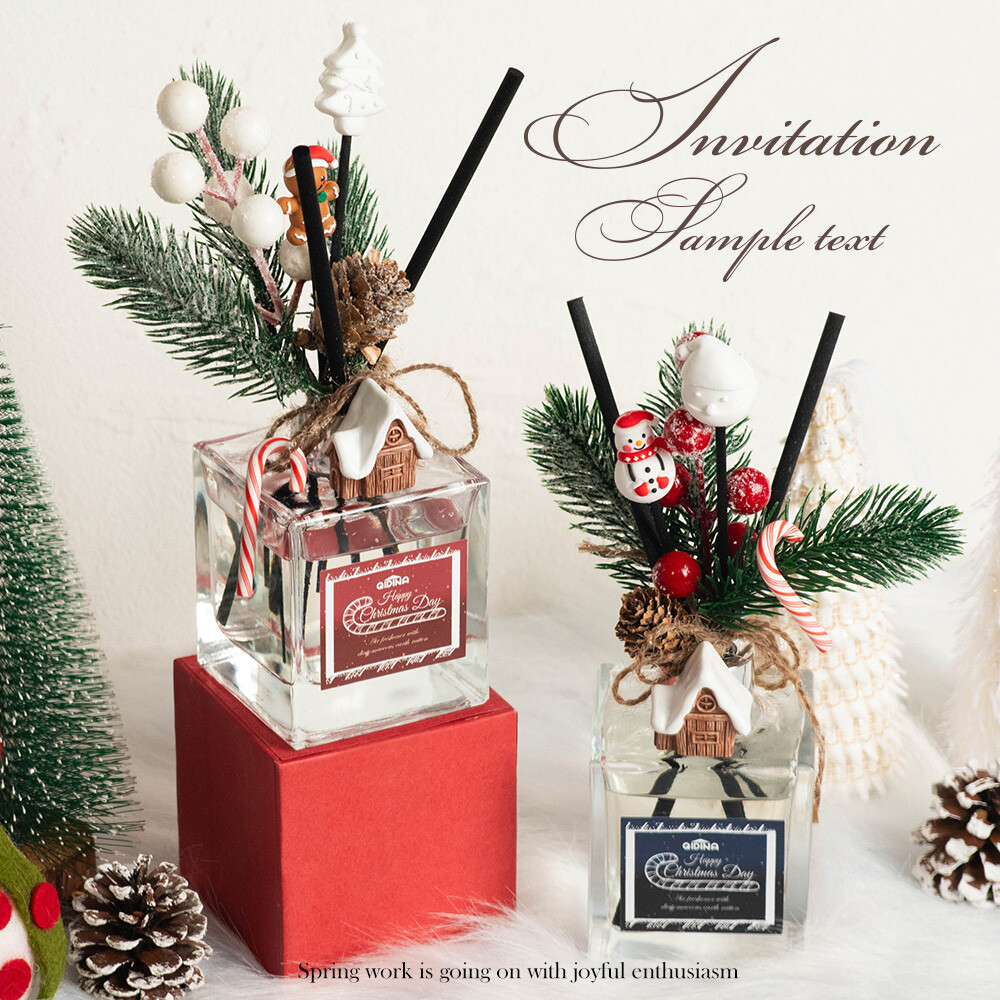 擴香瓶下單香味包含:手工硅藻土擴香石x1、碳纖維薰香棒x5、聖誕配件x4(多款隨機)、200ml香氛擴香瓶、聖誕限定精美盒x1(2款隨機)