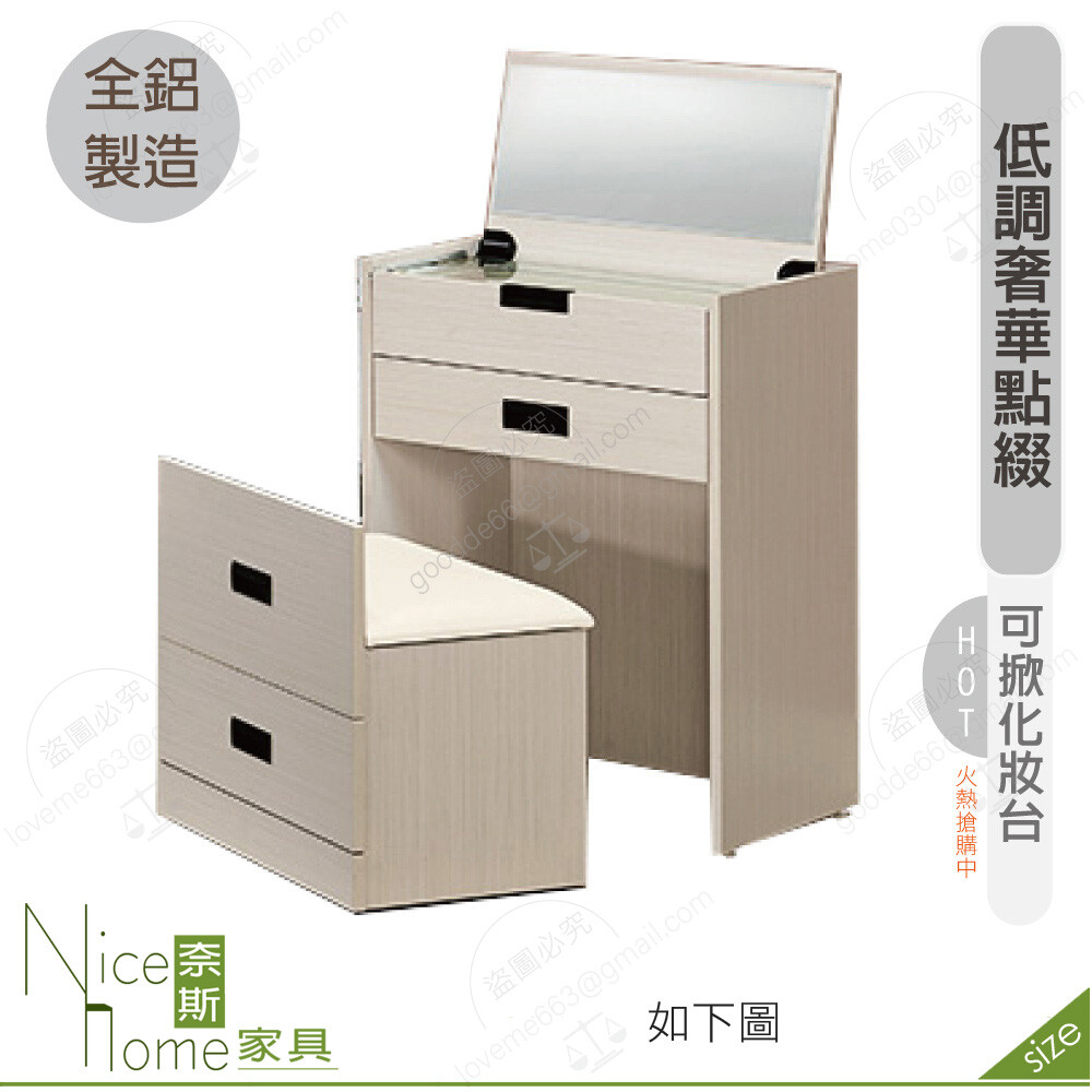 TEL: (02)2828-0860 手機 / Line ID:0905-423-752商品評價你可能也會喜歡《奈斯家具Nice》406-03-HA 蘇香桐全鋁2尺化妝台/鏡台/含椅124800《奈斯家具Nice》402-01-HA 蘇香桐全鋁2尺三斗櫃97920《奈斯家具Nice》412-02-HA 蘇香桐全鋁2尺展示櫃157440《奈斯家具Nice》410-02-HA 蘇香桐全鋁2.6尺四斗櫃167040《奈斯家具Nice》420-02-HA 蘇香桐全鋁4尺二抽書桌115200《奈斯家具Nice》421-02-HA 蘇香桐全鋁5.3尺碗盤櫃下座196800《奈斯家具Nice》422-02-HA 蘇香桐全鋁4尺碗盤櫃下座162240《奈斯家具Nice》425-02-HA 蘇香桐全鋁1.3尺餐邊櫃/下座65280《奈斯家具Nice》430-02-HA 蘇香桐全鋁4尺前台櫃136320《奈斯家具Nice》413-02-HA 蘇香桐全鋁4尺大茶几/含凳/A02122880《奈斯家具Nice》408-02-HA 蘇香桐全鋁1.5尺轉角吊櫃/衣櫃73920《奈斯家具Nice》409-02-HA 蘇香桐全鋁2.6尺三抽衣櫥/衣櫃249600《奈斯家具Nice》515-07-HA 丹尼2尺鏡台/化妝台/含椅48960《奈斯家具Nice》308-02-HJ 帕特2尺鏡台/化妝台/含椅89280《奈斯家具Nice》021-02-HA 灰橡色2尺鏡台/含椅63360《奈斯家具Nice》194-02-HV 愛麗絲2尺化妝台/鏡台/含椅57600《奈斯家具Nice》509-01-HA 卡莫娜米白2尺鏡台/化妝台/含椅75840《奈斯家具Nice》407-02-HA 蘇香桐全鋁3.5尺床頭片39360《奈斯家具Nice》305-08-HA 米希亞白榆木雙色2尺鏡台/化妝台/含椅77760