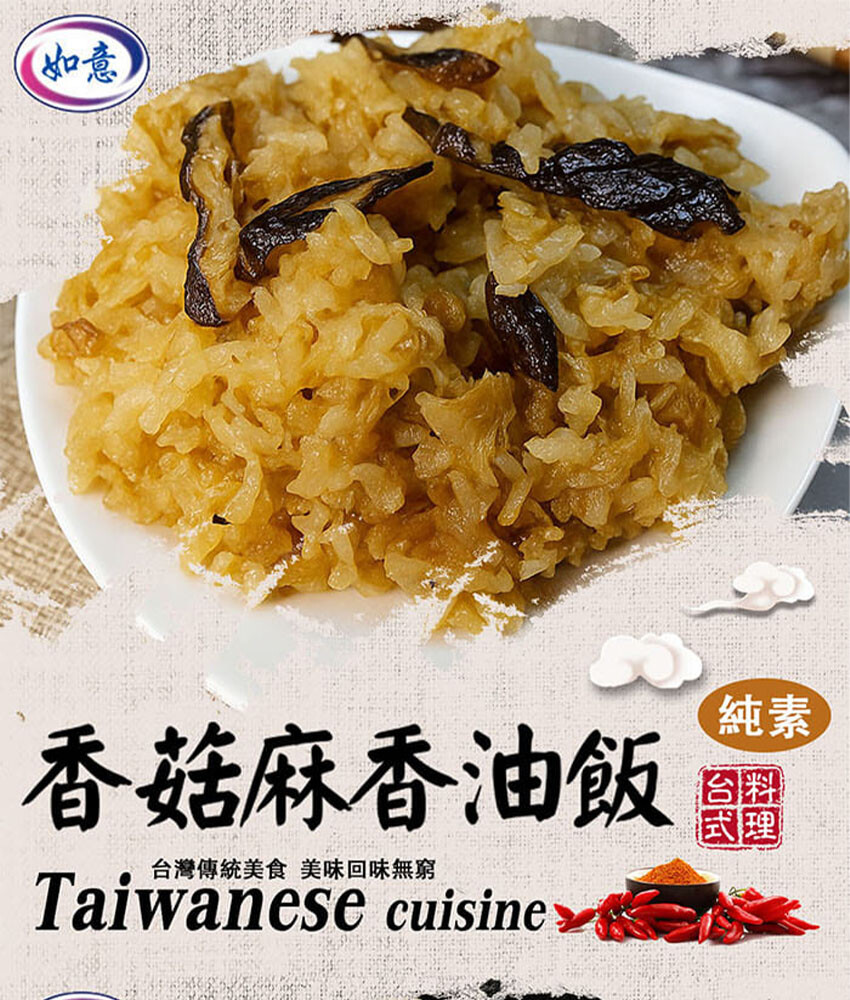 成份:糯米、水、薑、芝麻香油(大豆沙拉油、芝麻油)、麻油、香菇、醬油(水、非基因改造脫脂大豆片、小麥、轉化液糖、(蔗糖、水)、食鹽、酵母抽出物)、調味料(食鹽、蔗糖、麥芽糊精、小麥水解蛋白、酵母抽出物、高麗菜抽出物)、鹽