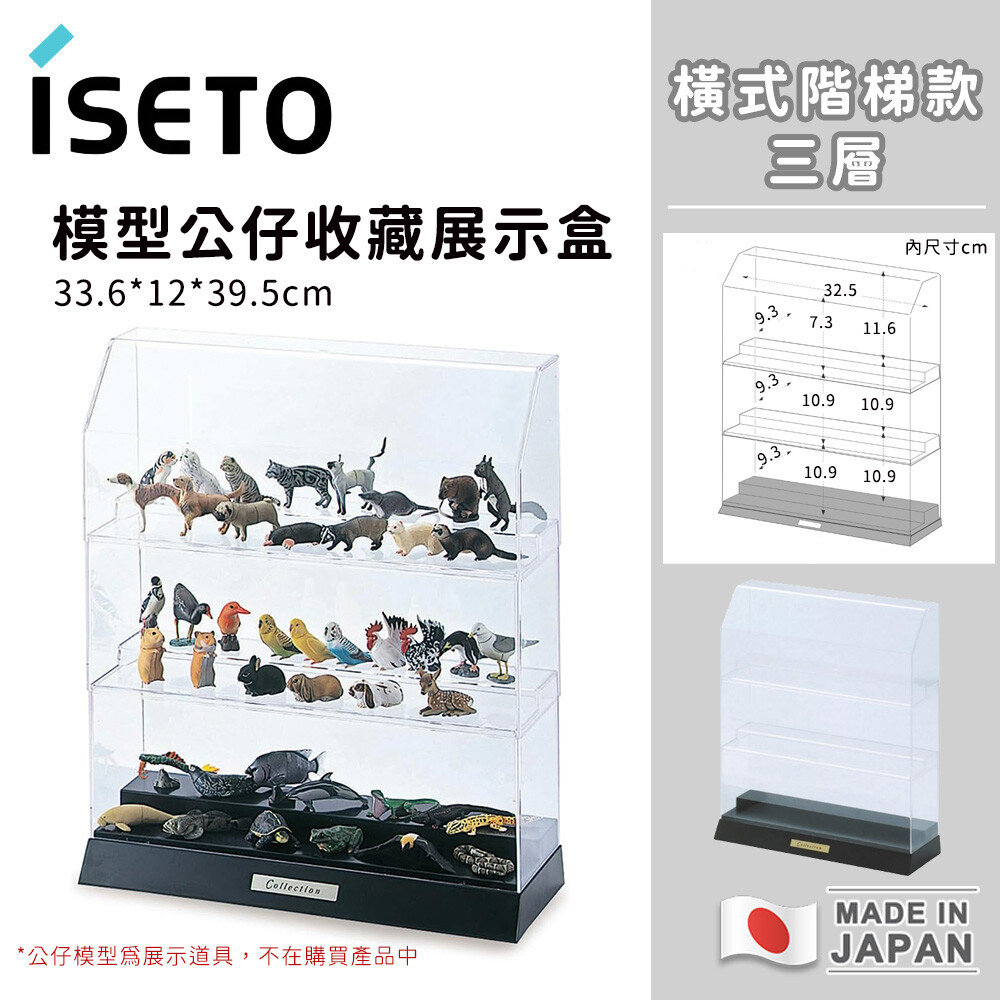 【日本ISETO】日本製橫式階梯展示盒 透明公仔模型收藏盒-三層33.6×12×39.5cm