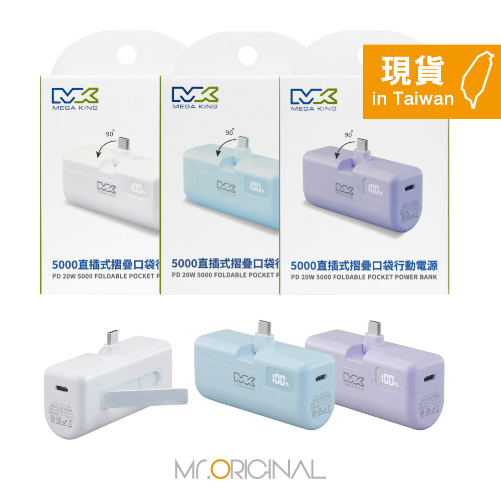 MEGA KING 原廠盒裝 5000mAh PD直插式摺疊口袋行動電源【Type-C接口】