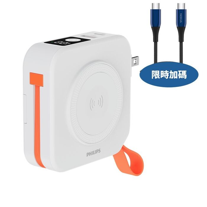 飛利浦【DLP4348CW-E】10000mah FunCube多合一磁吸Type C白色不含轉接頭