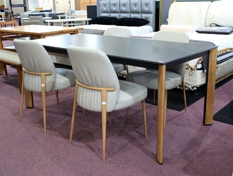 1839920 椅1839921材質 板材 : 桌面10mm灰黑色岩板材質 , 實木腳座堅固耐用