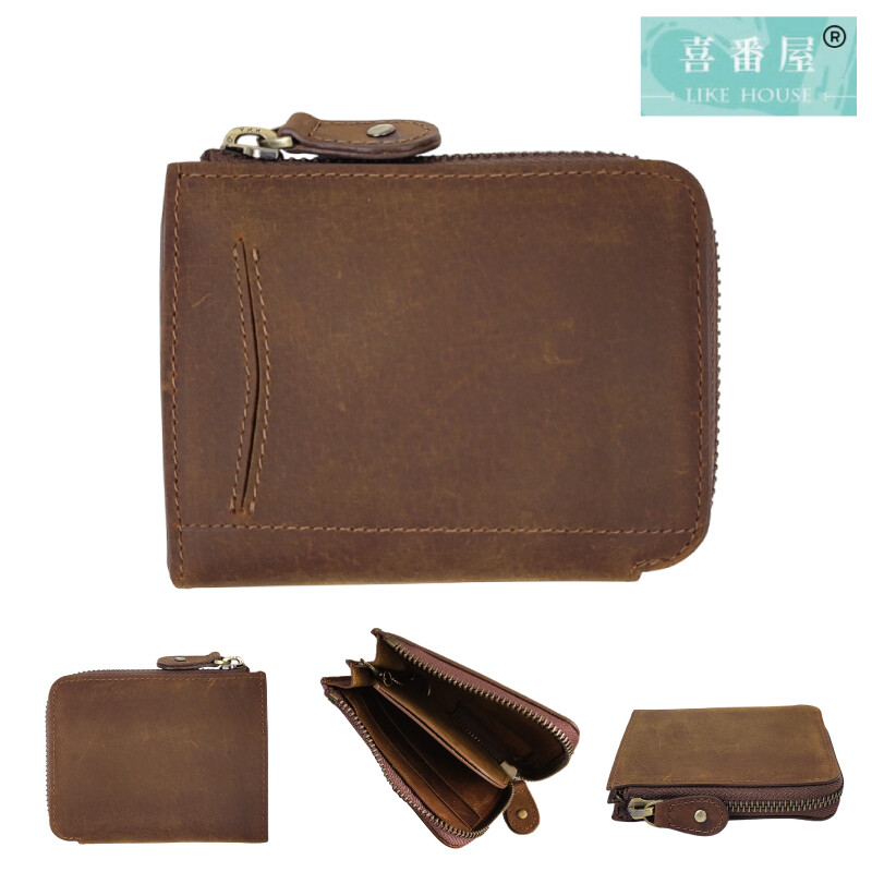 商品名稱:【喜番屋】真皮頭層瘋馬牛皮L型拉鏈零錢包小錢包【LH1141】