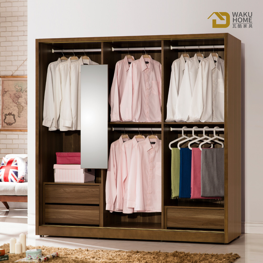 WAKUHOME 瓦酷家具Yamy淺胡桃實木7x7尺推門衣櫥(內附側拉鏡) A010-535