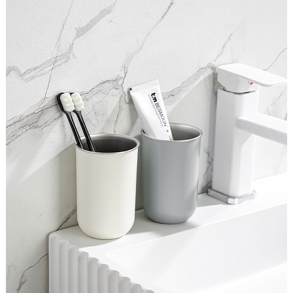【COMET】350ml圓形不鏽鋼漱口杯2入組(盥洗杯 漱口杯 飲料杯 不鏽鋼牙刷杯/LS474)