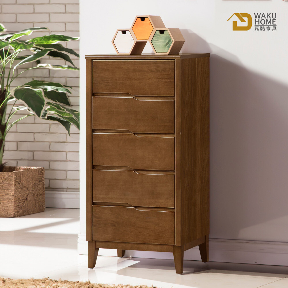 WAKUHOME 瓦酷家具Yamy淺胡桃實木2尺五斗櫃 (實木面板/檯面/座腳)A010-537